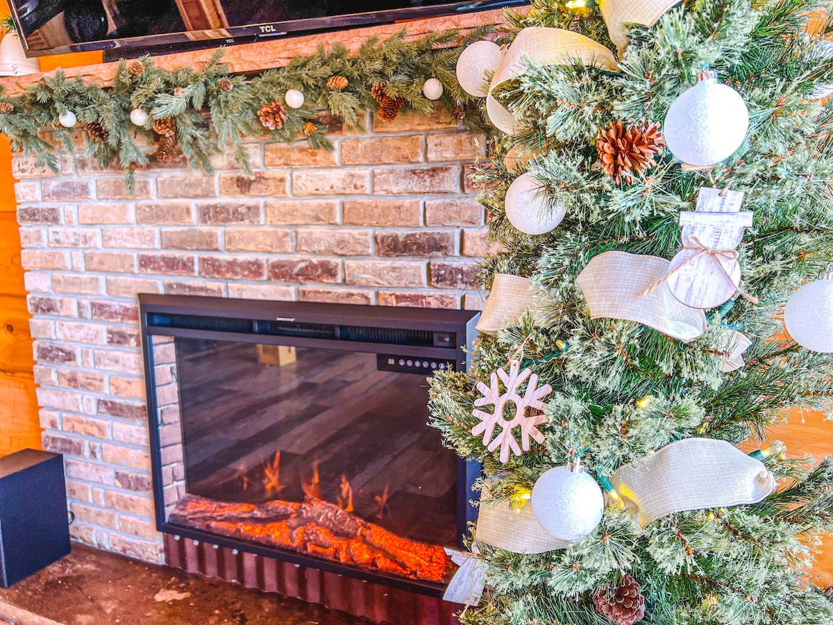 Step inside to a spacious and inviting living area featuring a beautiful stone fireplace and a 65โ Smart HDTV โ the perfect spot to unwind after a fun day in the Smokies ๐ข.